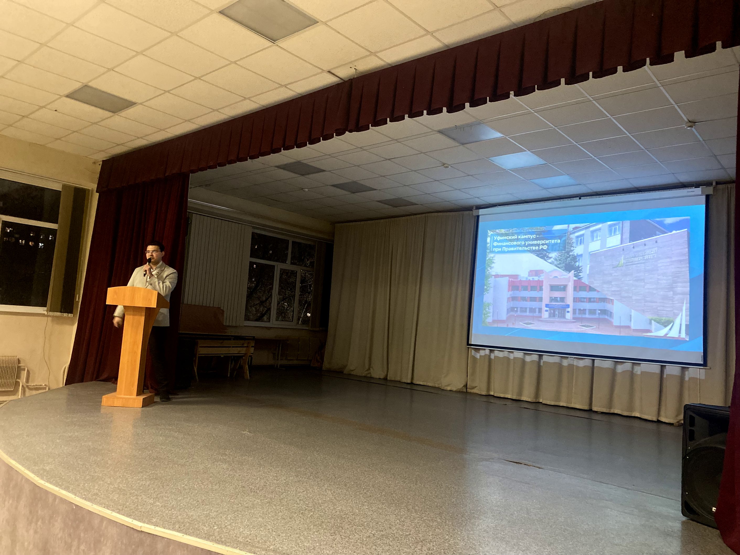 2 декабря 2025 года представители Уфимского кампуса Финуниверситета принялиучастие в общегородском цикле профориентационных собраний, выступив перед учащимися и родителями Калининского района на базе МАОУ «Лицей № 60 имени М.А. Ферина».